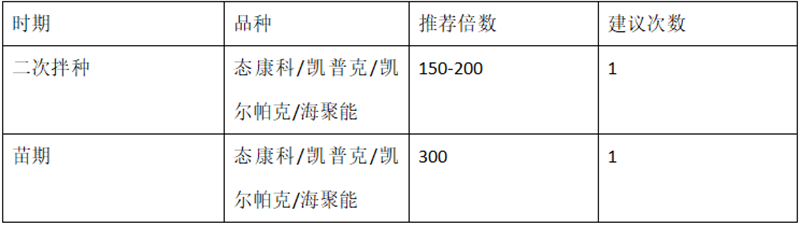 (2)推薦施肥套餐(根據用肥次數分類,結合目標產量、地域、品種、地力等適當調整)